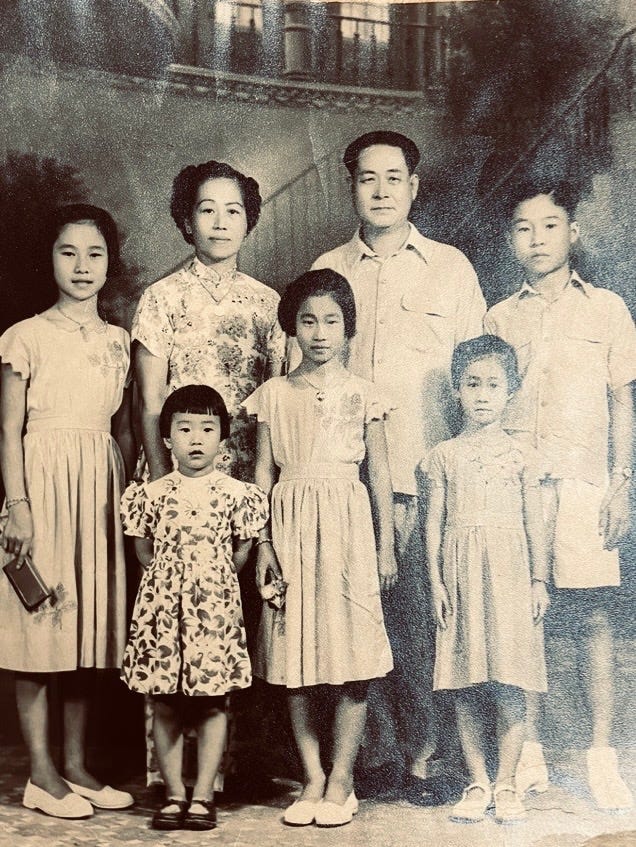 my grandfather wears his hair slicked back like Chairman Mao’s